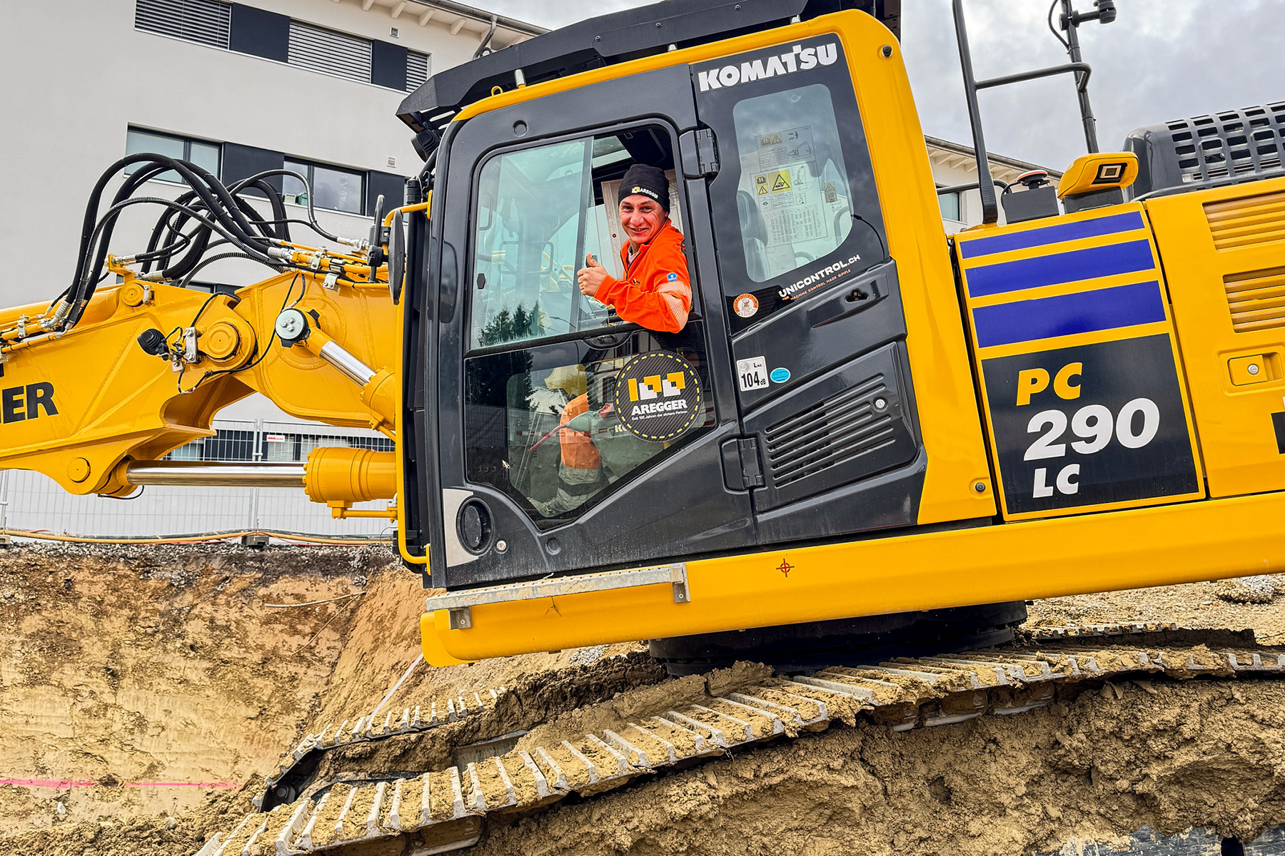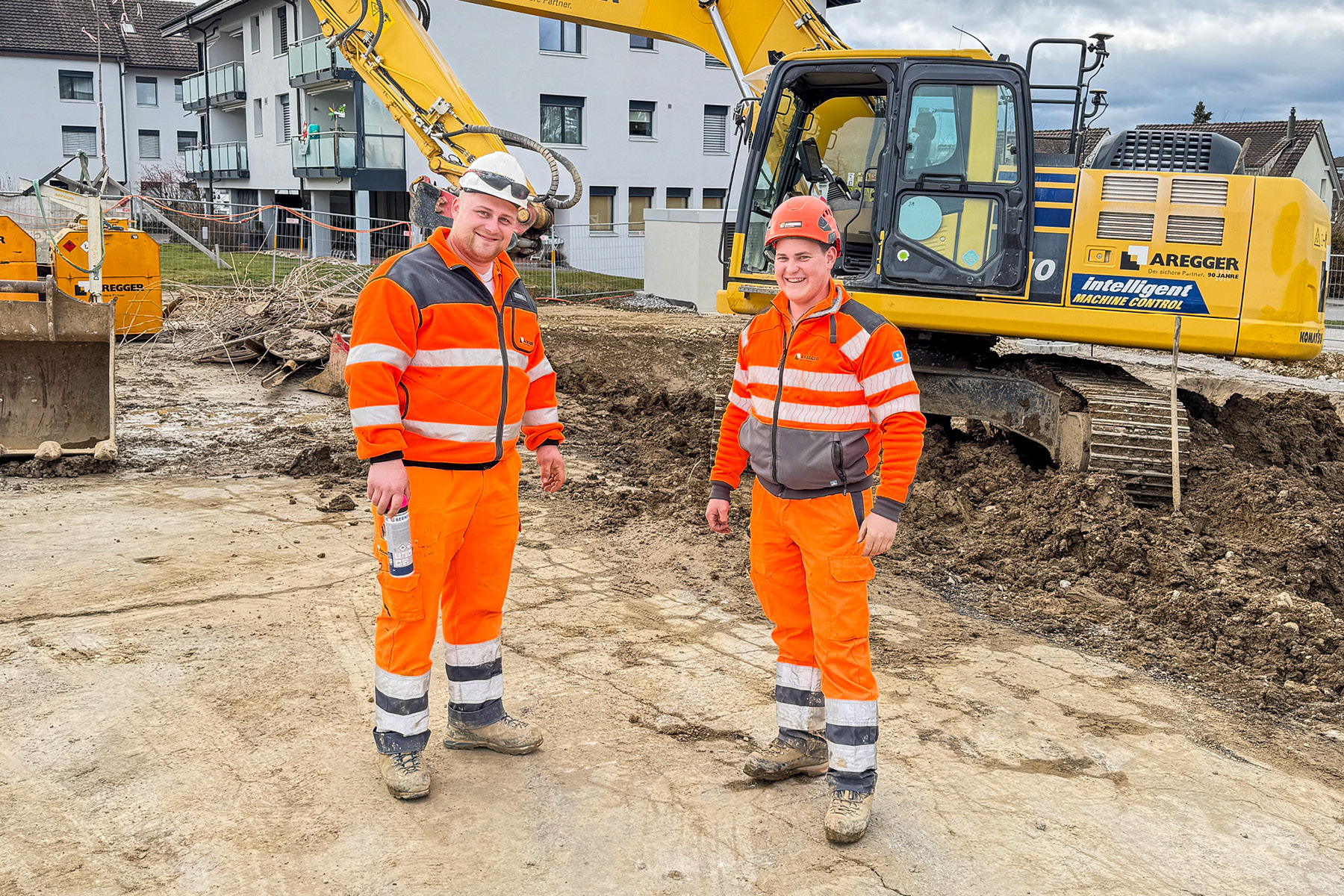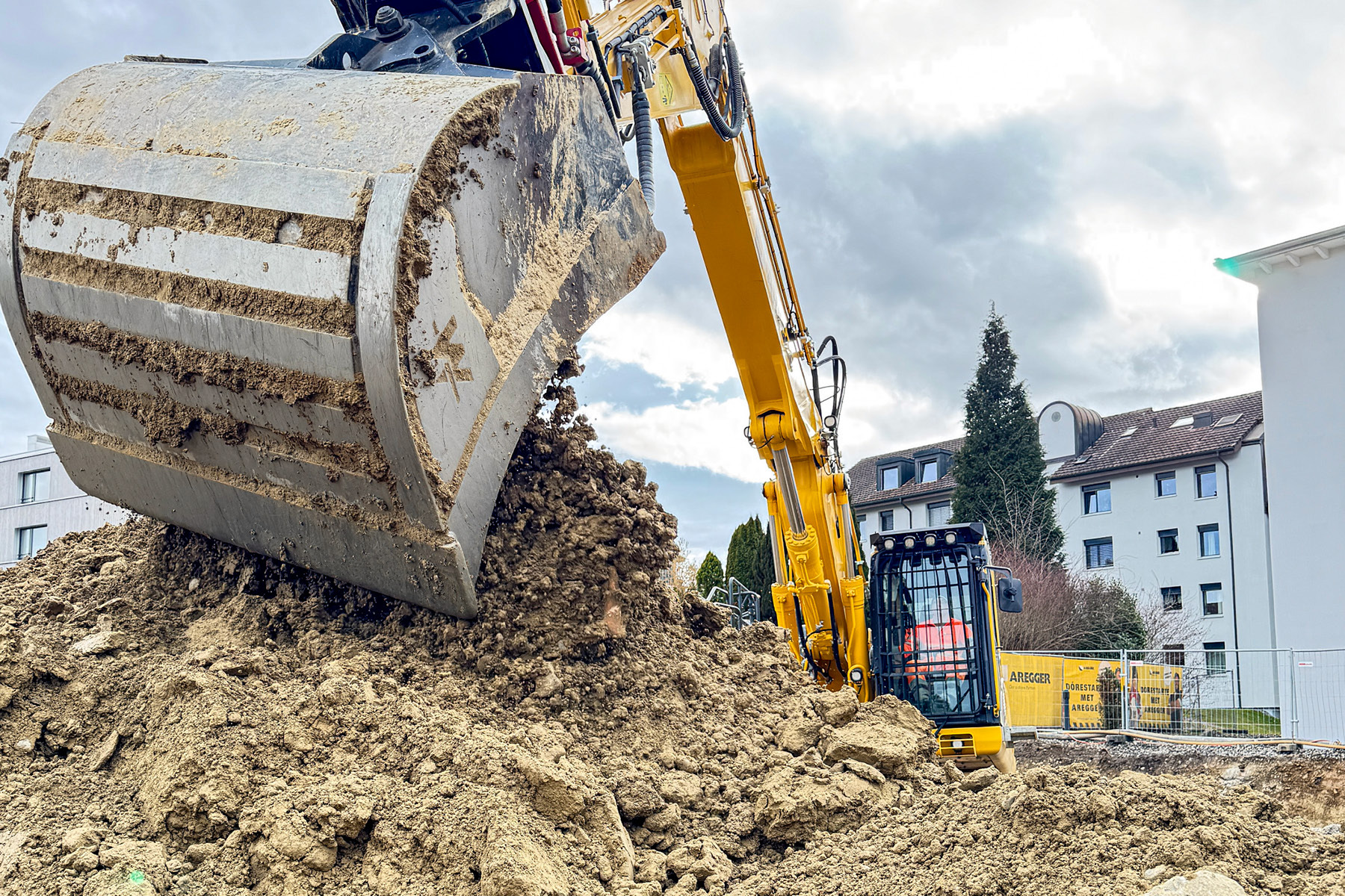 Beim Objekt Feld in Oberkirch erstellt die Aregger AG die Baugruben mit einer Nagelwand. Der Aushub erfolgt etappenweise, wobei die Wand nach jedem Schritt mit Spritzbeton gesichert und anschliessend mit Selbstbohrankern verankert wird. Dieses Verfahren sorgt für höchste Stabilität, kurze Bauzeiten und ist ideal für Projekte mit begrenztem Raum.