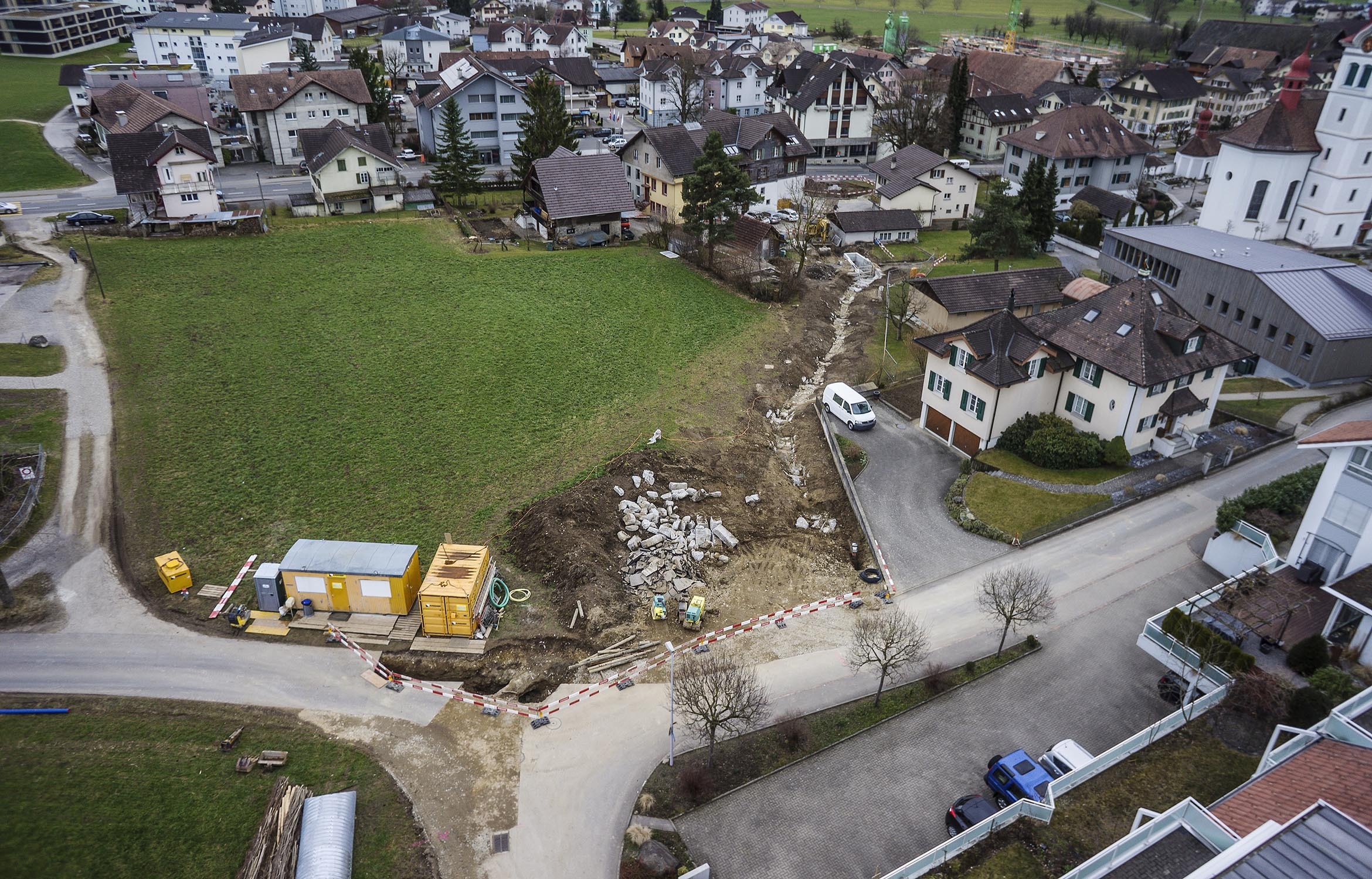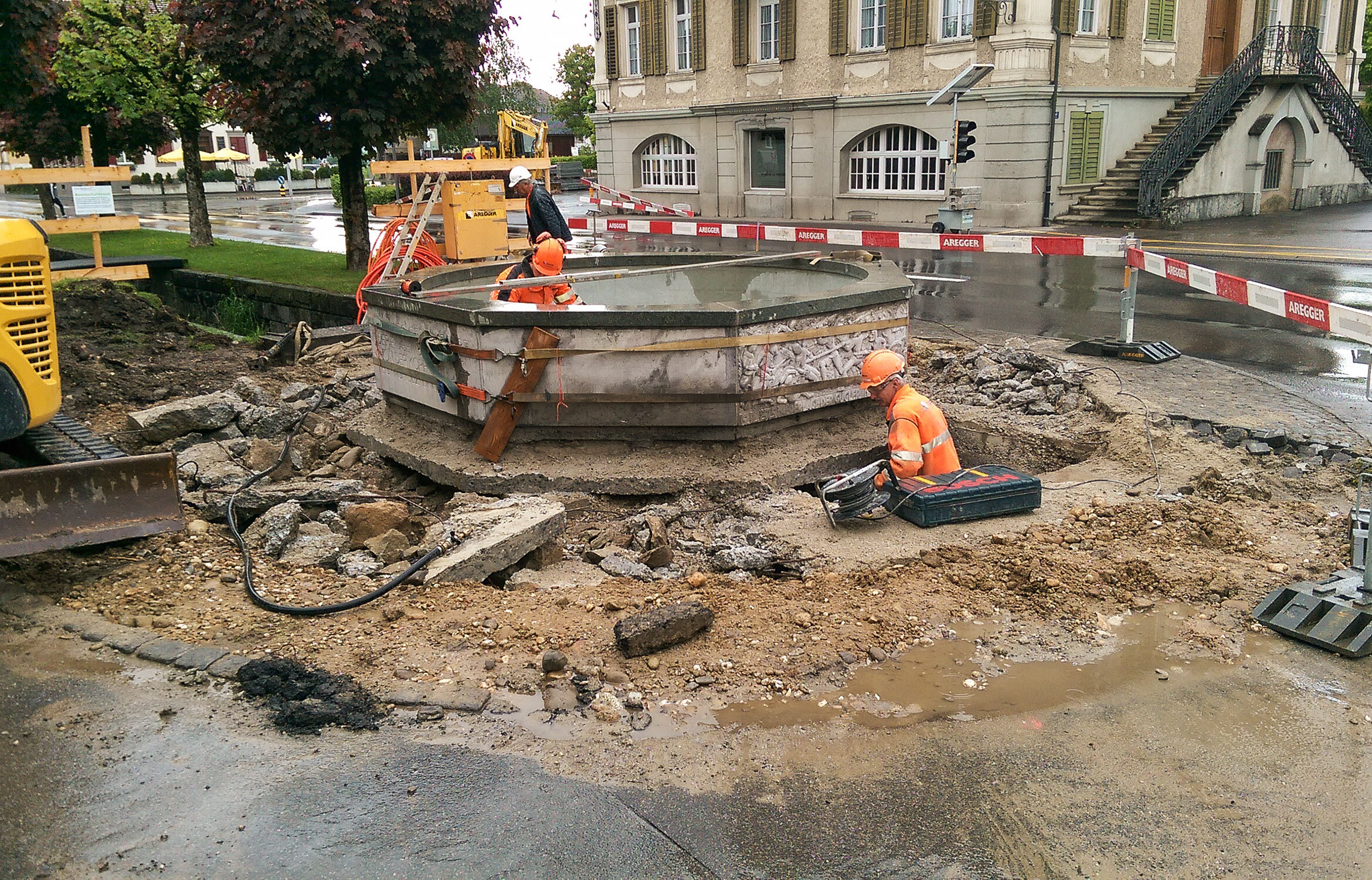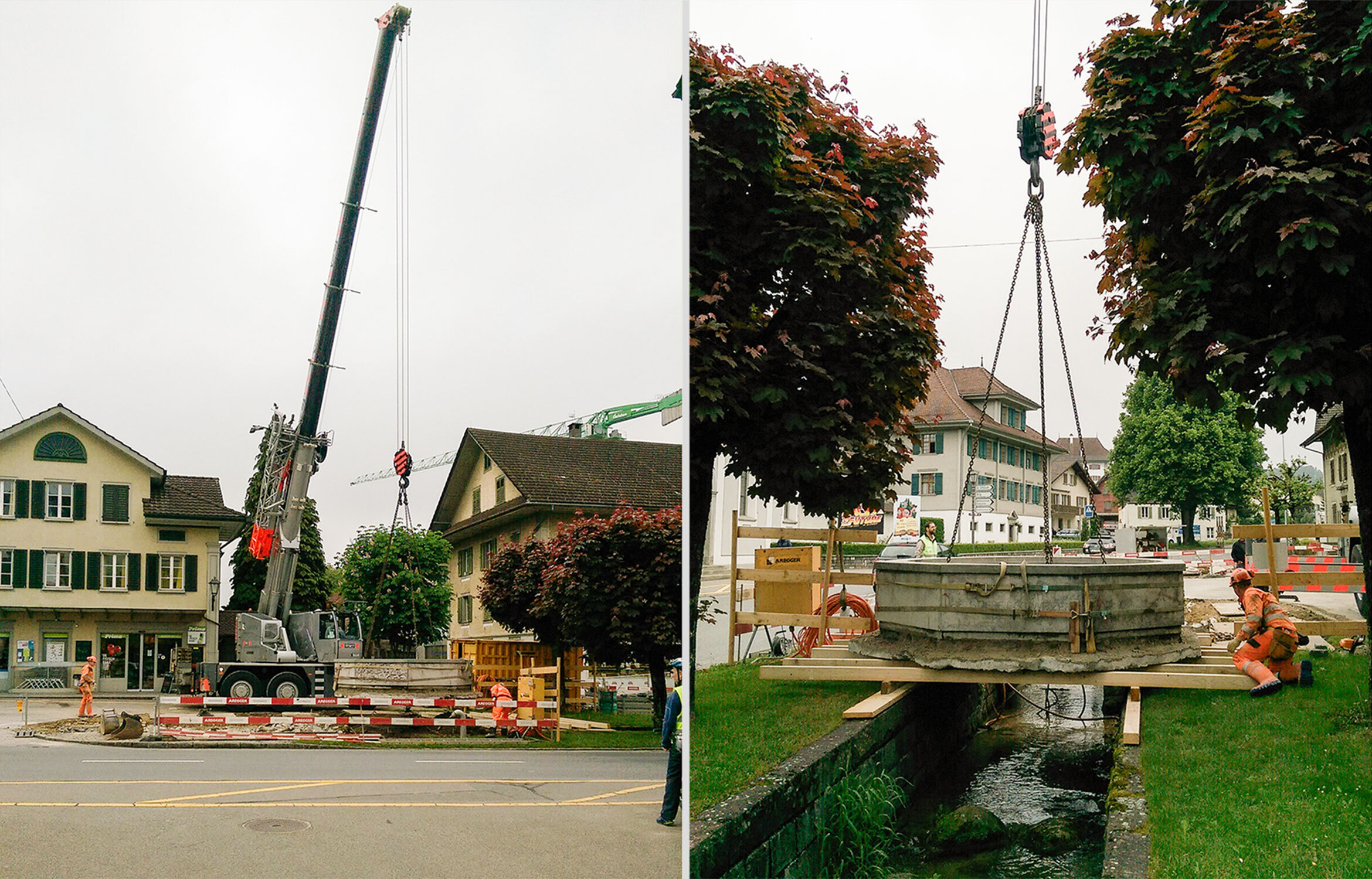 Für den Hochwasserschutz wird der Stockbach teilweise offen gelegt und renaturiert. Zwei Durchlässe unter der Strasse müssen ersetzt und erweitert werden. Für den Durchlass muss der Dorfbrunnen provisorisch versetzt werden.