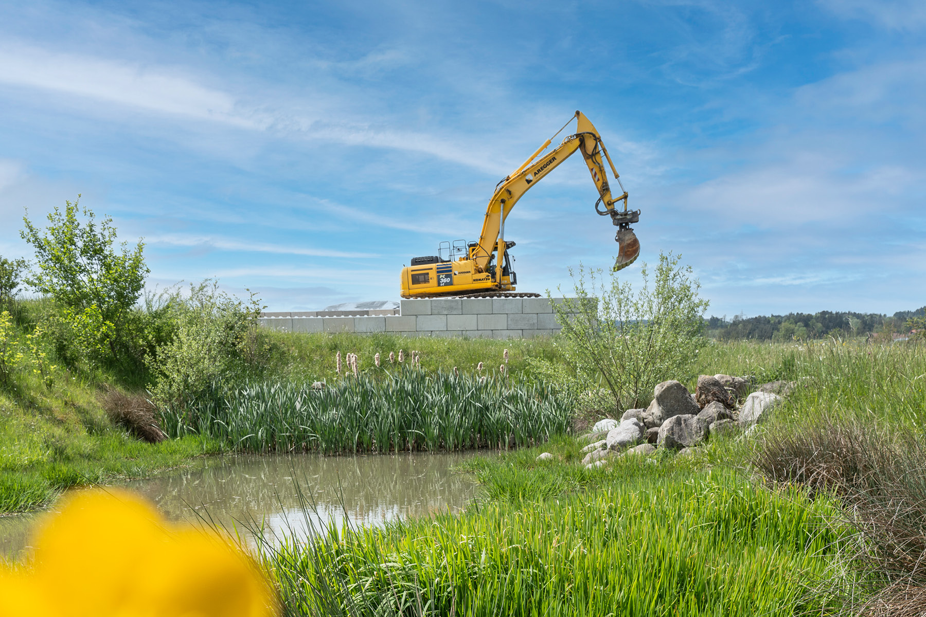 Beim Kiesabbau nehmen wir besondere Rücksicht auf die Natur und schaffen durch ökologische Ausgleichsmassnahmen neuen Lebensraum. Unsere rekultivierten Flächen sind für Pflanzen und Tiere gleichermassen wertvoll. Auch für Renaturierungen engagieren wir uns, denn eine naturnahe Ufergestaltung fördert die Biodiversität, bietet Kleintieren einen wichtigen Lebensraum und schafft für Menschen ein wertvolles Naherholungsgebiet.