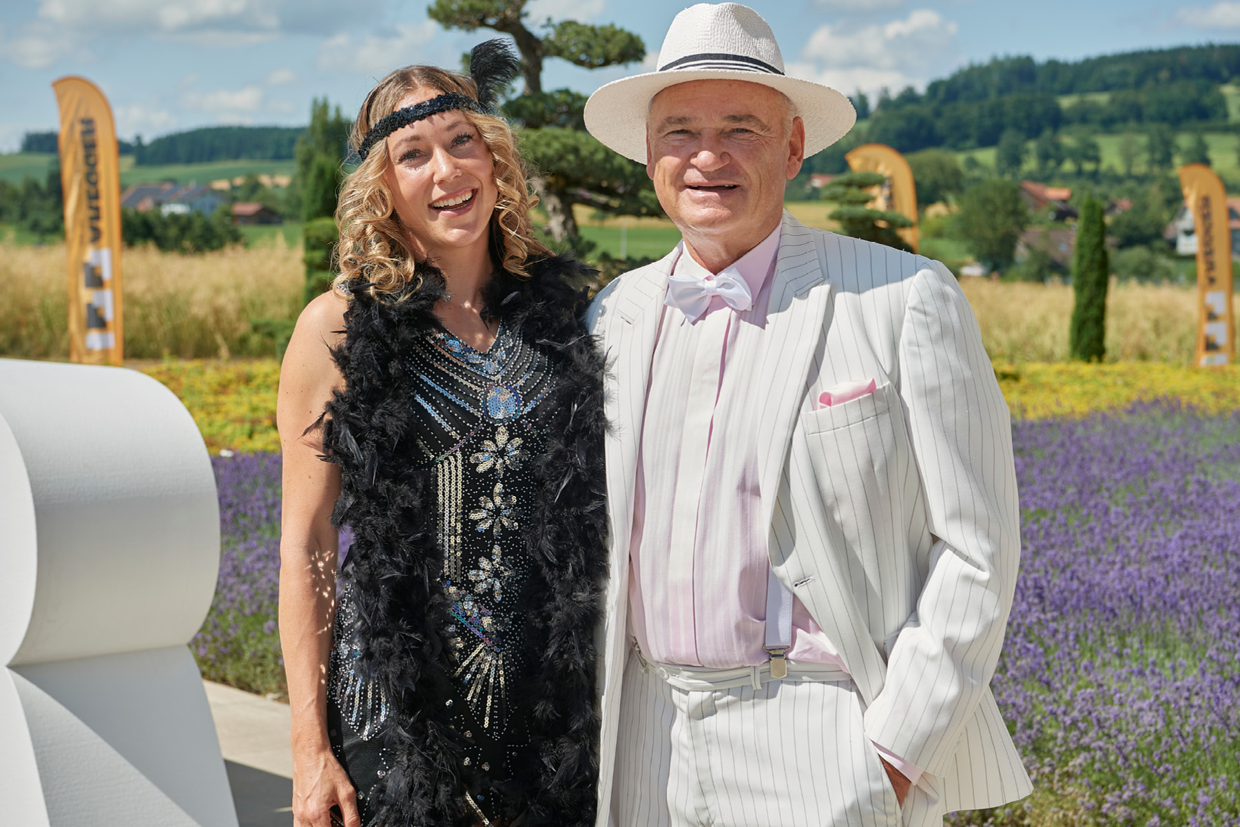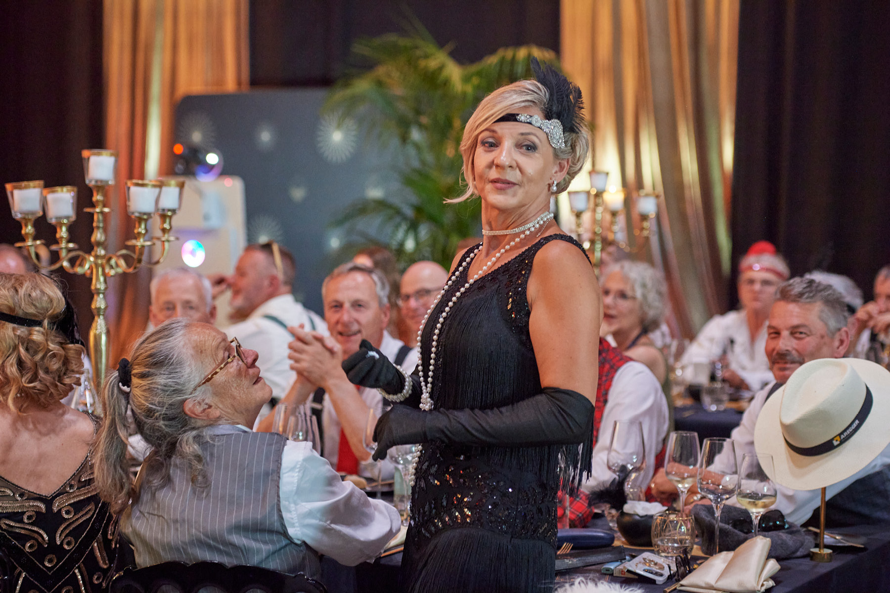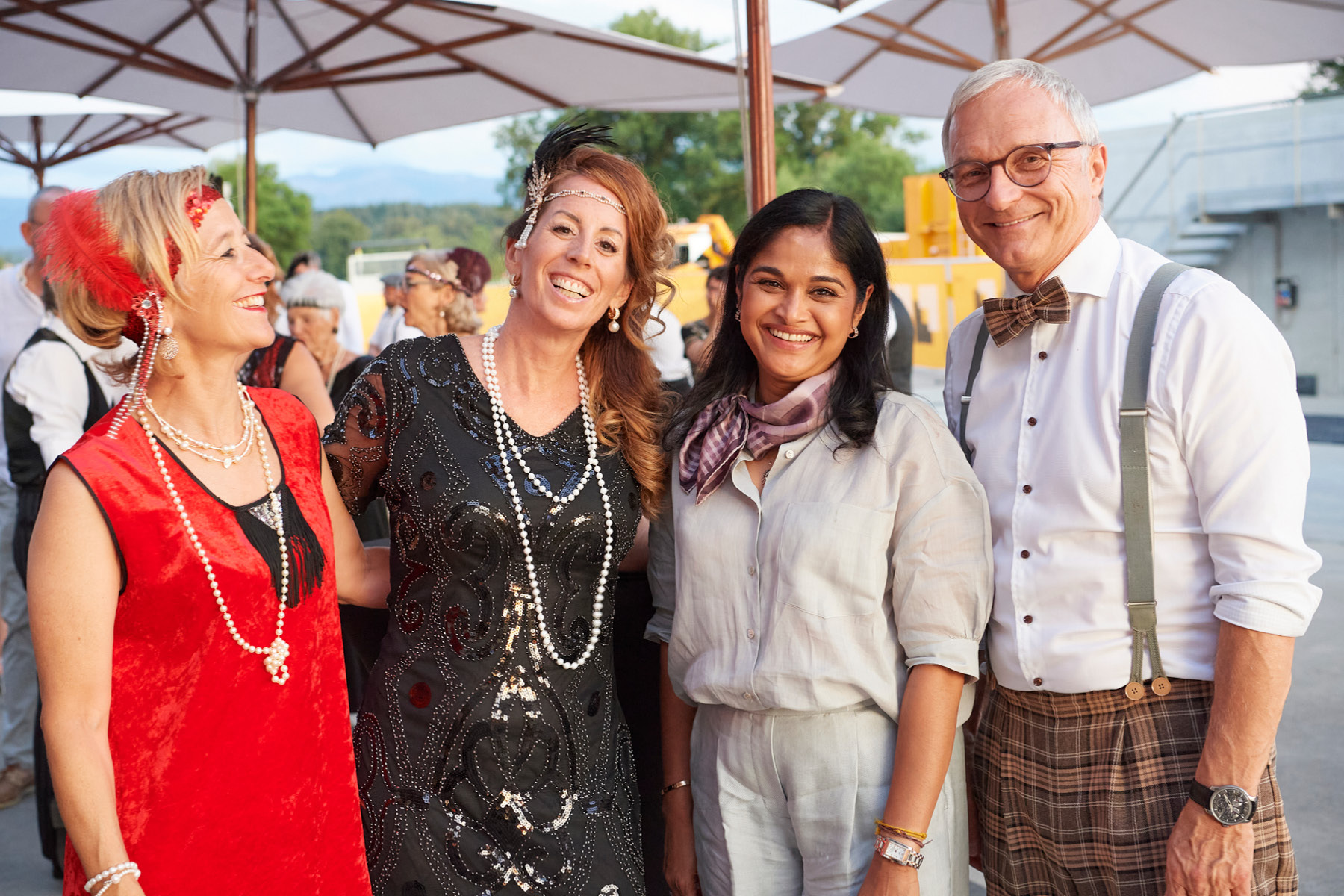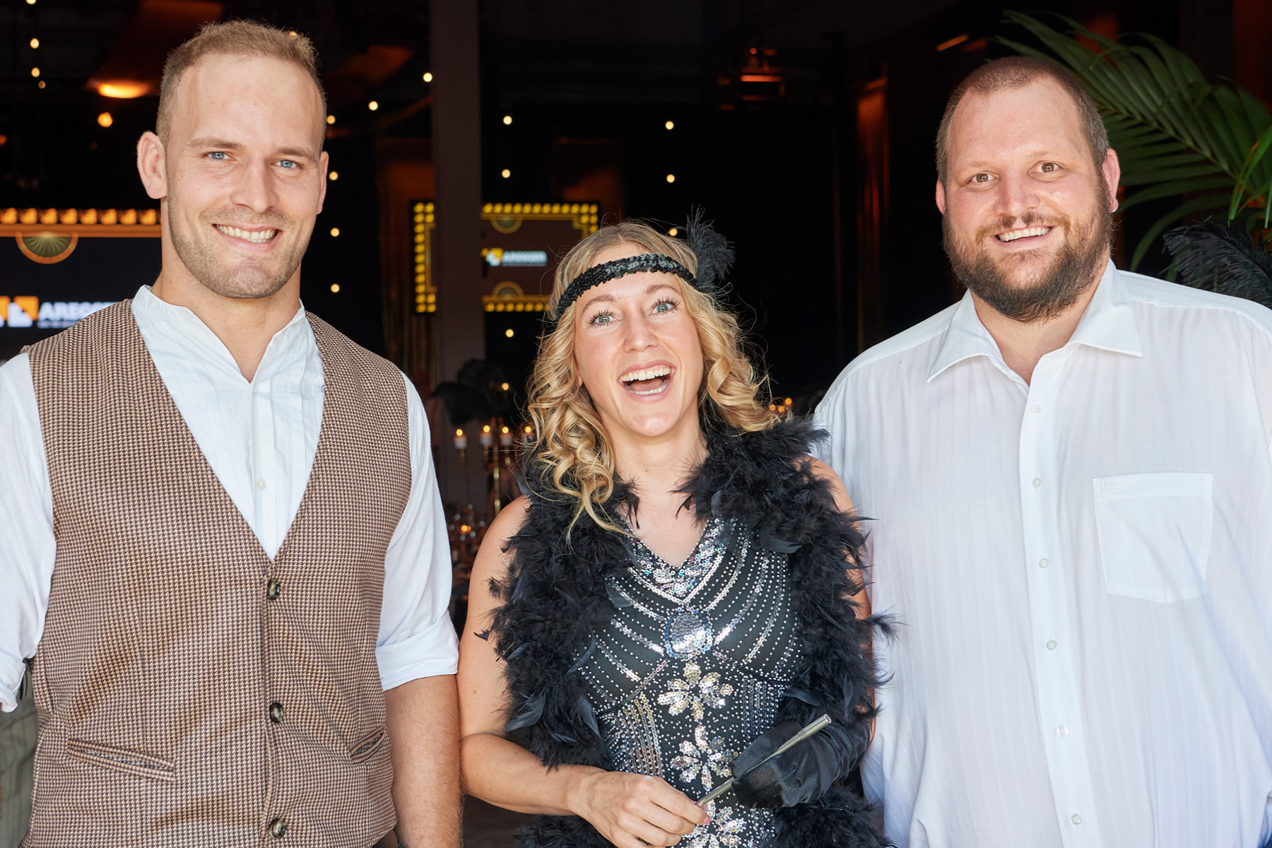Der Freitagabend, zu dem neben (aktuellen und ehemaligen) Kader-Mitarbeitenden auch Kunden und bedeutende Persönlichkeiten aus Wirtschaft und Politik eingeladen waren, stand ganz im Zeichen der «Golden Twenties». Bereits die Ankunft der Gäste war ein Highlight und waren der Startschuss in ein feierliches Wochenende. Die rund 250 Gäste – mottogerecht in schicke Anzüge und Roben gekleidet – kamen in den Genuss zeitgemässer Musik, spektakulärer Showacts und amüsanter Talks – moderiert von Rainer-Maria Salzgeber.