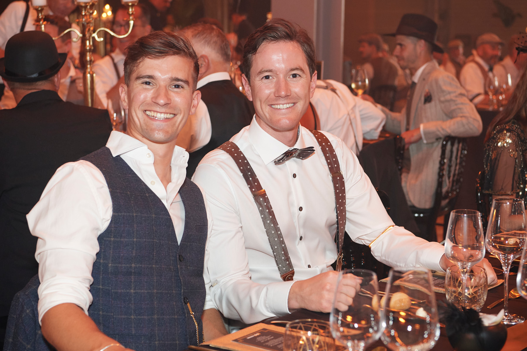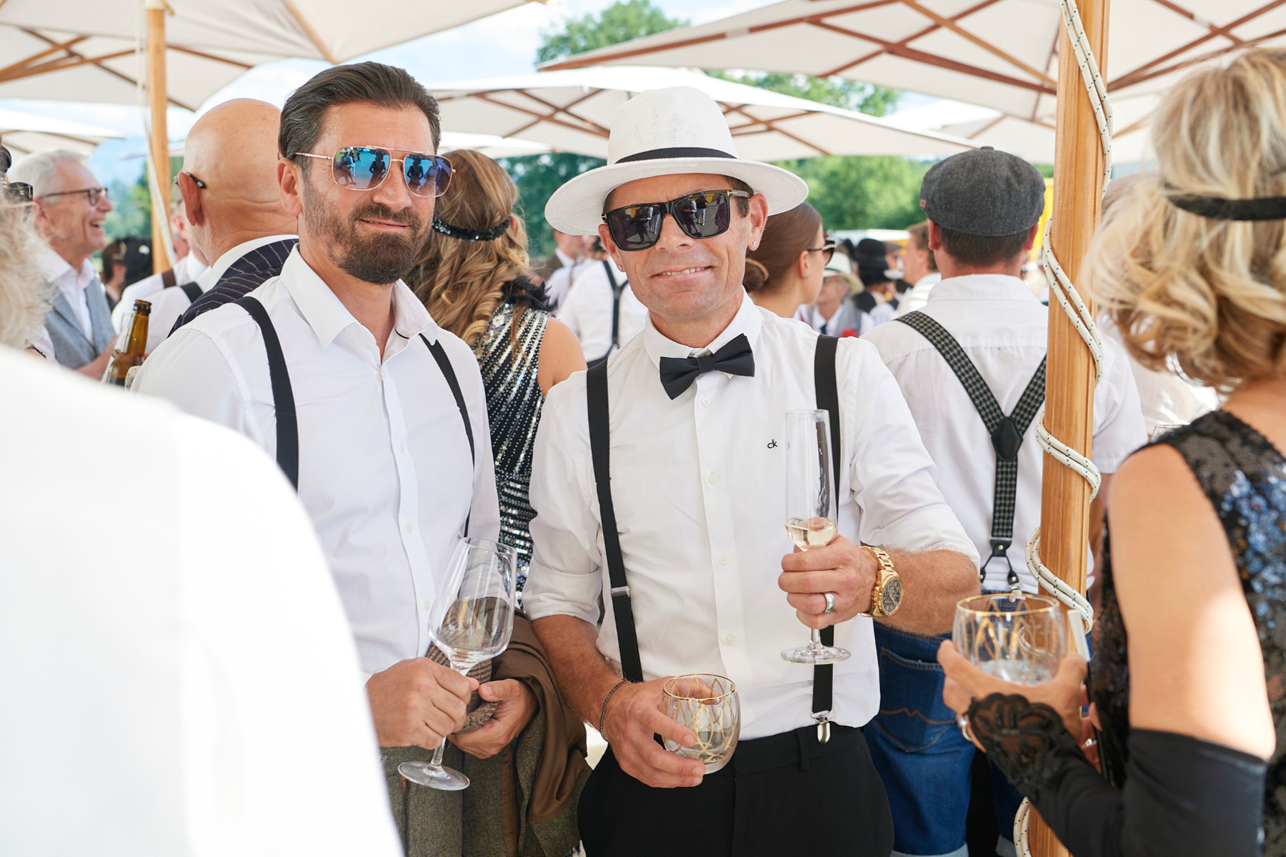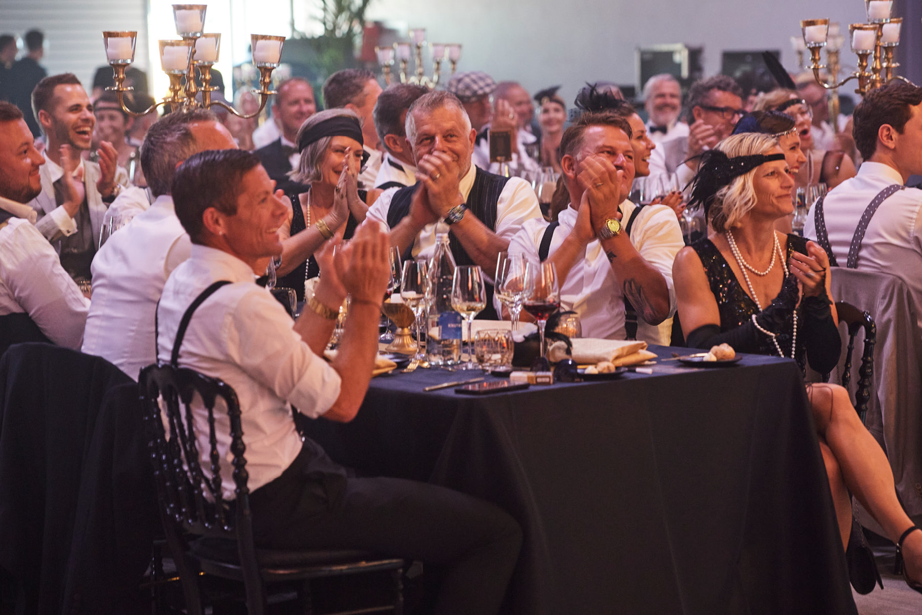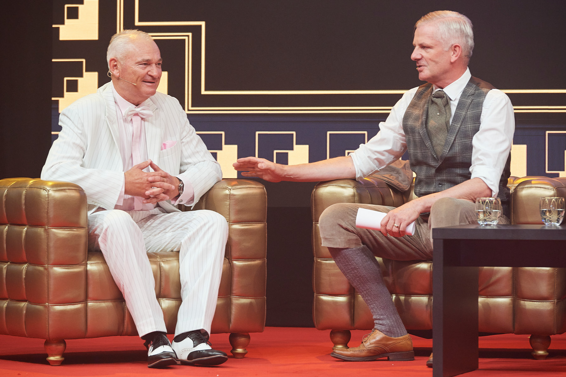 Der Freitagabend, zu dem neben (aktuellen und ehemaligen) Kader-Mitarbeitenden auch Kunden und bedeutende Persönlichkeiten aus Wirtschaft und Politik eingeladen waren, stand ganz im Zeichen der «Golden Twenties». Bereits die Ankunft der Gäste war ein Highlight und waren der Startschuss in ein feierliches Wochenende. Die rund 250 Gäste – mottogerecht in schicke Anzüge und Roben gekleidet – kamen in den Genuss zeitgemässer Musik, spektakulärer Showacts und amüsanter Talks – moderiert von Rainer-Maria Salzgeber.