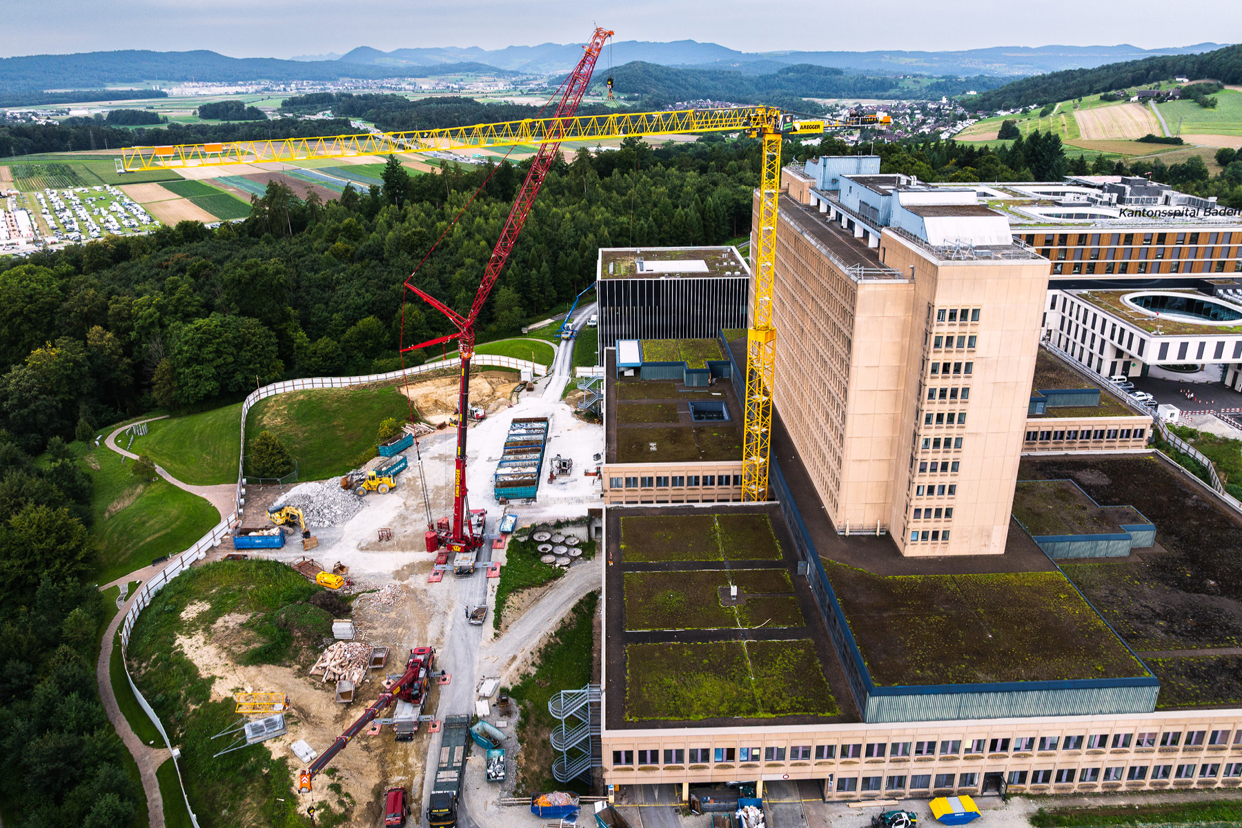 Bei der Schadstoffsanierung des Kantonsspitals Baden setzt die Aregger AG erstmals einen Kran ein, der nicht nur Strom verbraucht, sondern gleichzeitig fast ebenso viel zurückgewinnt und speichert.